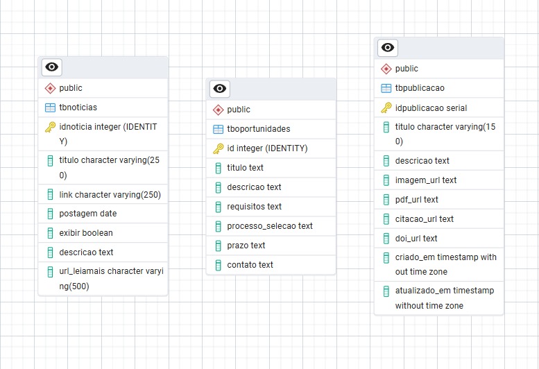 Descrição e diagrama das entidades, relacionamentos e estrutura do banco de dados utilizado no sistema, servindo como base para o desenvolvimento e integração com o backend.